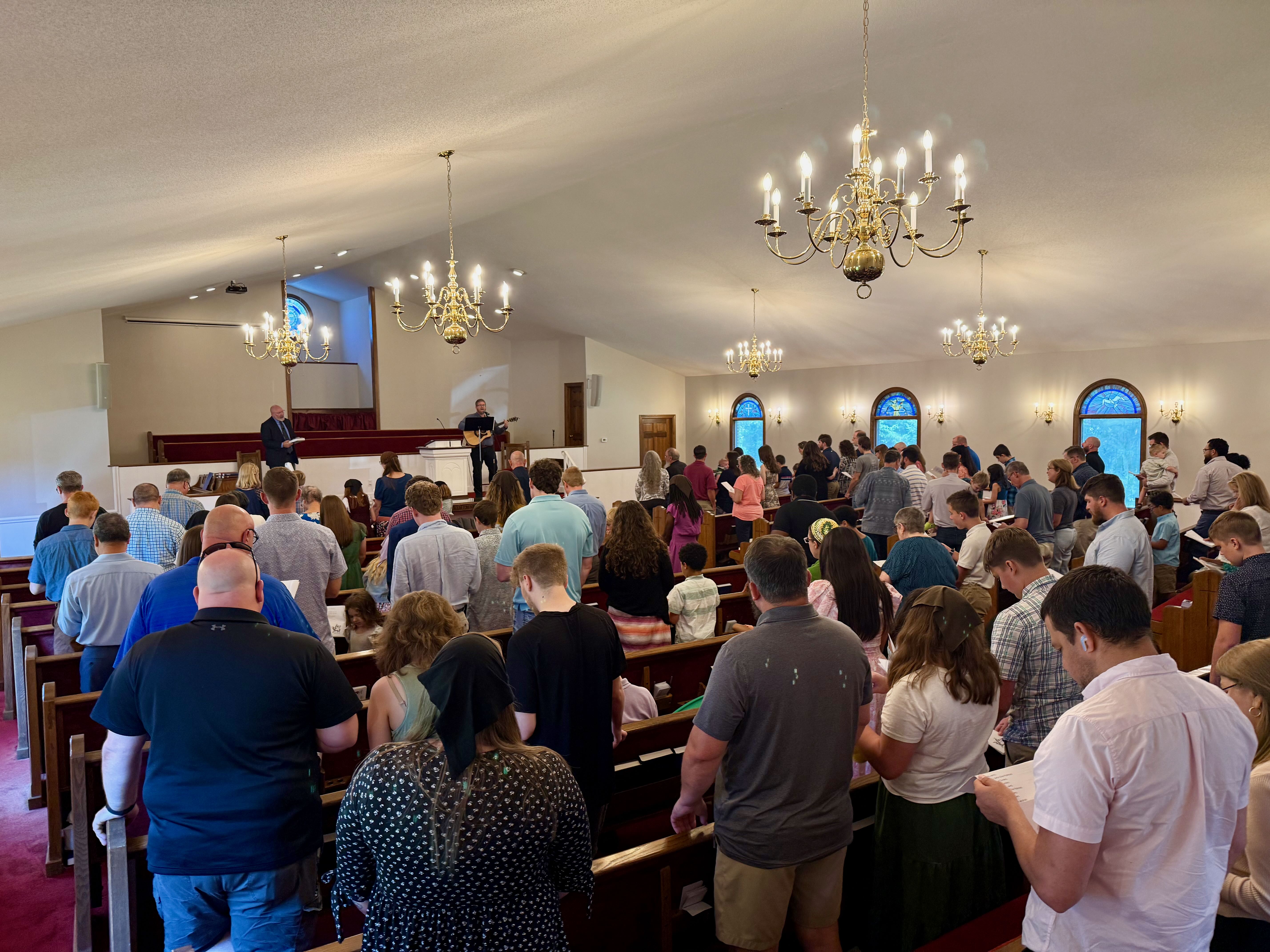 Our Sunday School hour begins at 9:45 AM and we currently have: A study through the Second London Confession of 1689 (our church's confession of faith); a class covering Church History; a "Family Class" that parents attend with their children in order to read Scripture, learn a catechism and sing songs before breaking off to discuss issues related to godly parenting and family relationships with the other parents while the children have some fun time together; and a Spanish-language Sunday School in which they are also working through the Second London Confession.